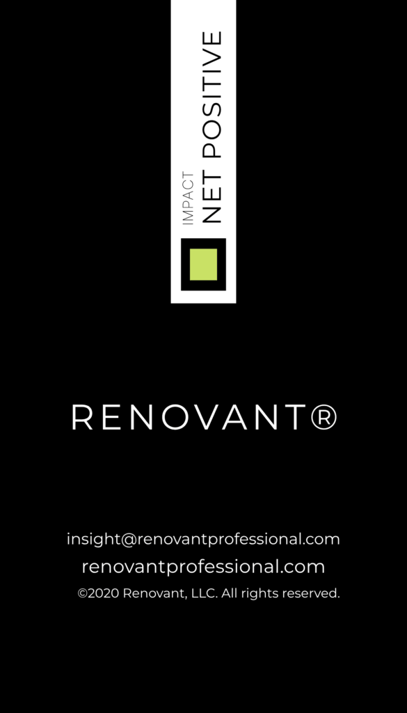 RENOVANT® uses business as a force for Net-Positive impact. Sustainability is not a side initiative for the firm; it is embedded in the way the practice advises, operates, partners, and grows.